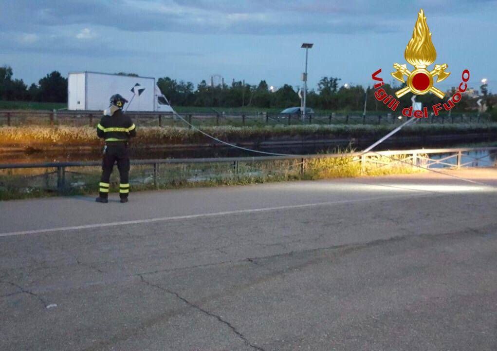 La caduta ha interessato anche la strada provinciale SP 59 – Vecchia Vigevanese ed il Naviglio Grande.