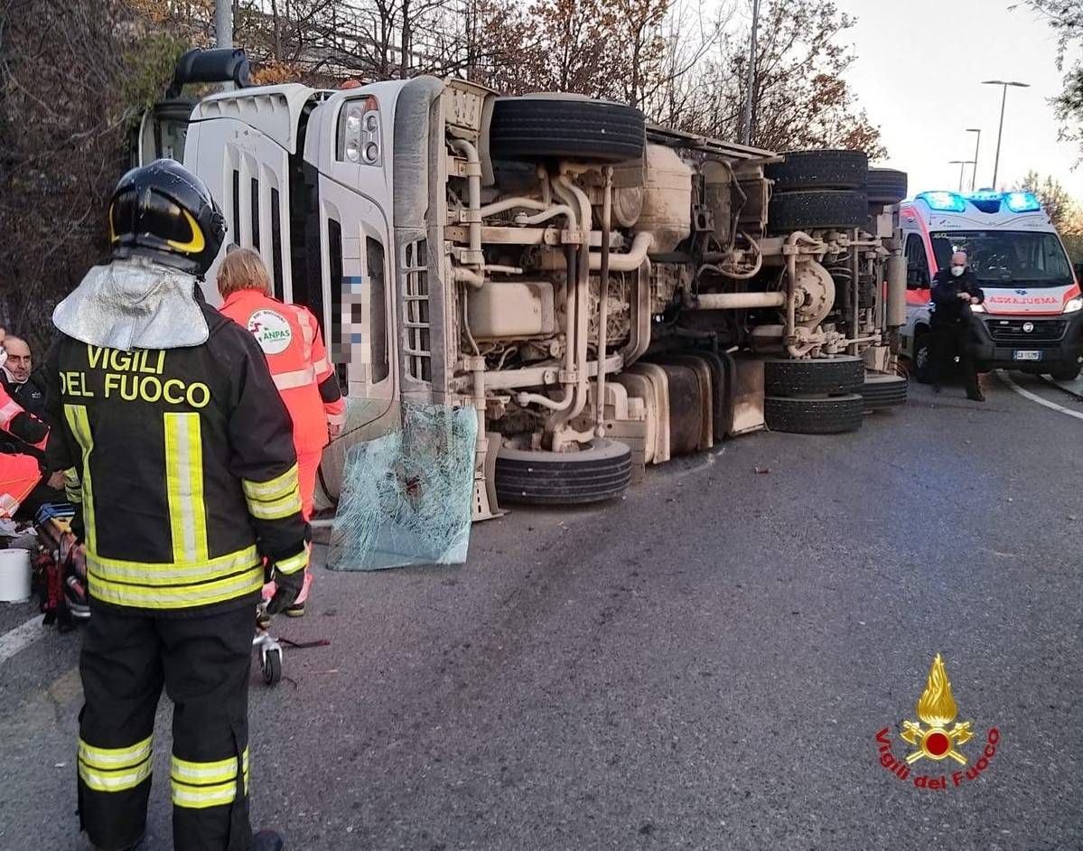Il conducente del camion ha riportato ferite lievi ed è stato inviato al pronto soccorso in codice verde. I vigili del fuoco stanno organizzando le operazioni per il sollevamento del camion rovesciato la cui presenza sulla carreggiata sta provocando rallentamenti al traffico.