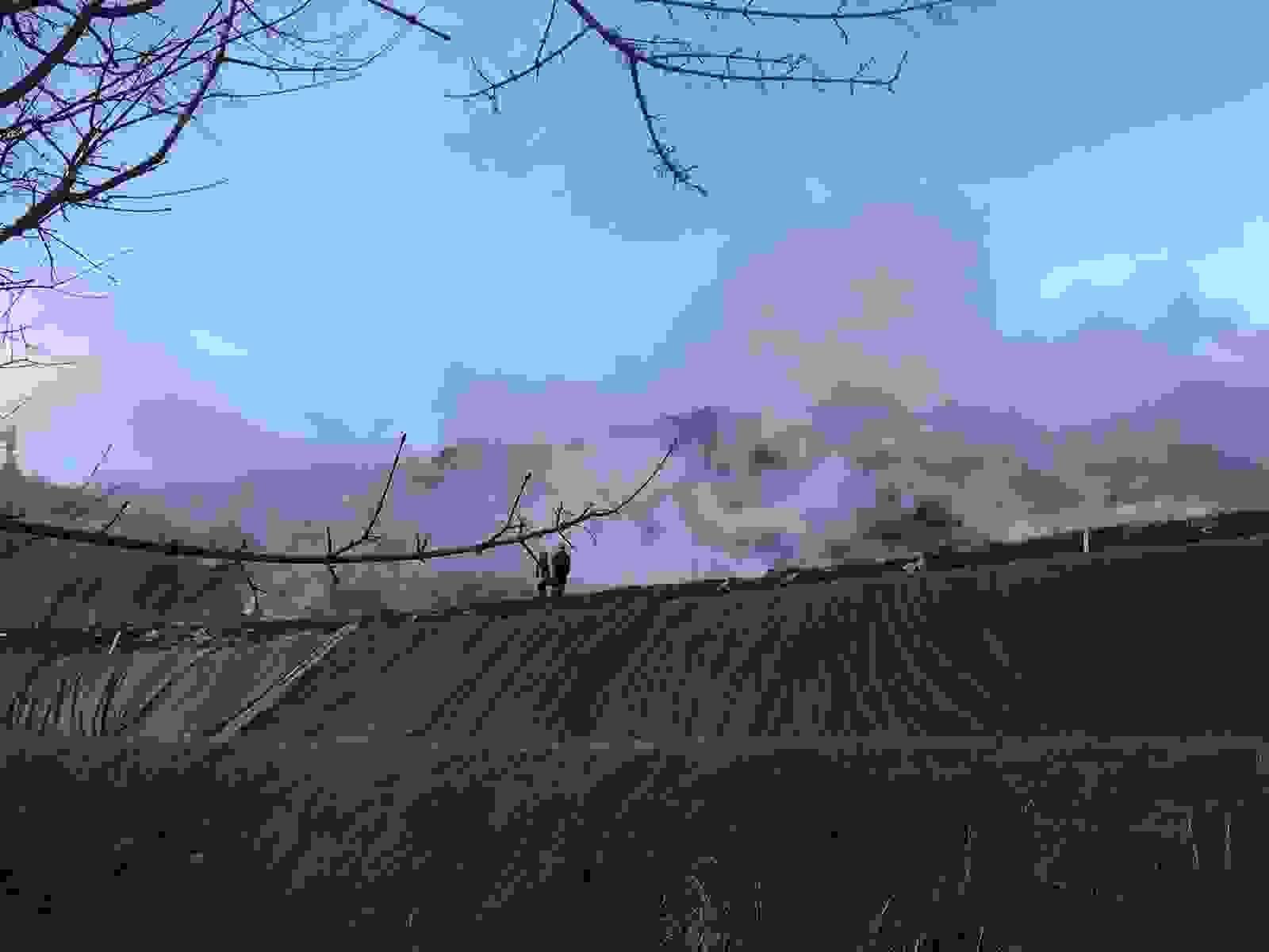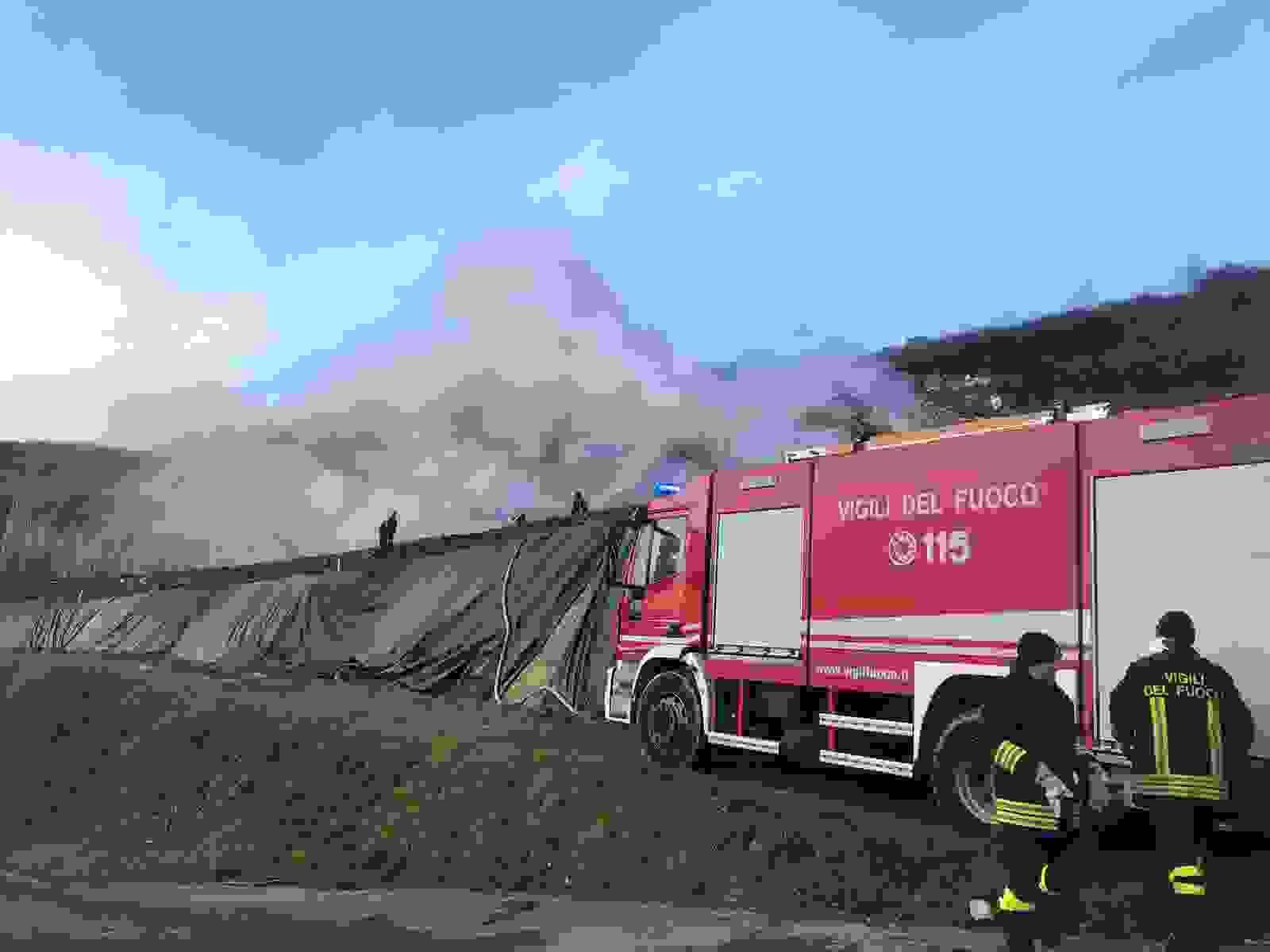 La lunga colonna di fumo nero è visibile in molti comuni della zona.
