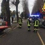 Un’auto è finita contro un’albero e poi si è ribaltata sulla strada nel primo pomeriggio di oggi a Tradate.