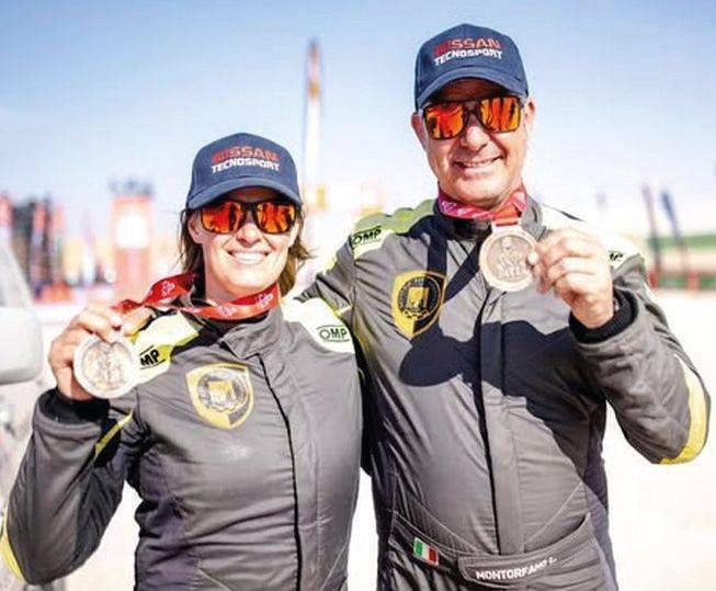 “Vorrei fare dei ringraziamenti, prima di tutto ad Elena, io non so come fa, ma ha questo dono nel portarmi ovunque con una precisione incredibile. Grazie a tutti gli sponsor che ci hanno dato una grandissima mano, tifato e sostenuto ogni minuto. Senza di loro non sarei qui a raccontare. Grazie a tutti gli amici, alla mia famiglia, i miei figli, alla mitica scuderia Santambroeus, che ci ha seguito, incoraggiato e spronato nei momenti complicati, e i meccanici di Tecnosport. Grazie a Mattia, che ha gestito da casa tutte le informazioni sul nostro gruppo Telegram e ci ha aiutato quando avevamo bisogno sul campo”.