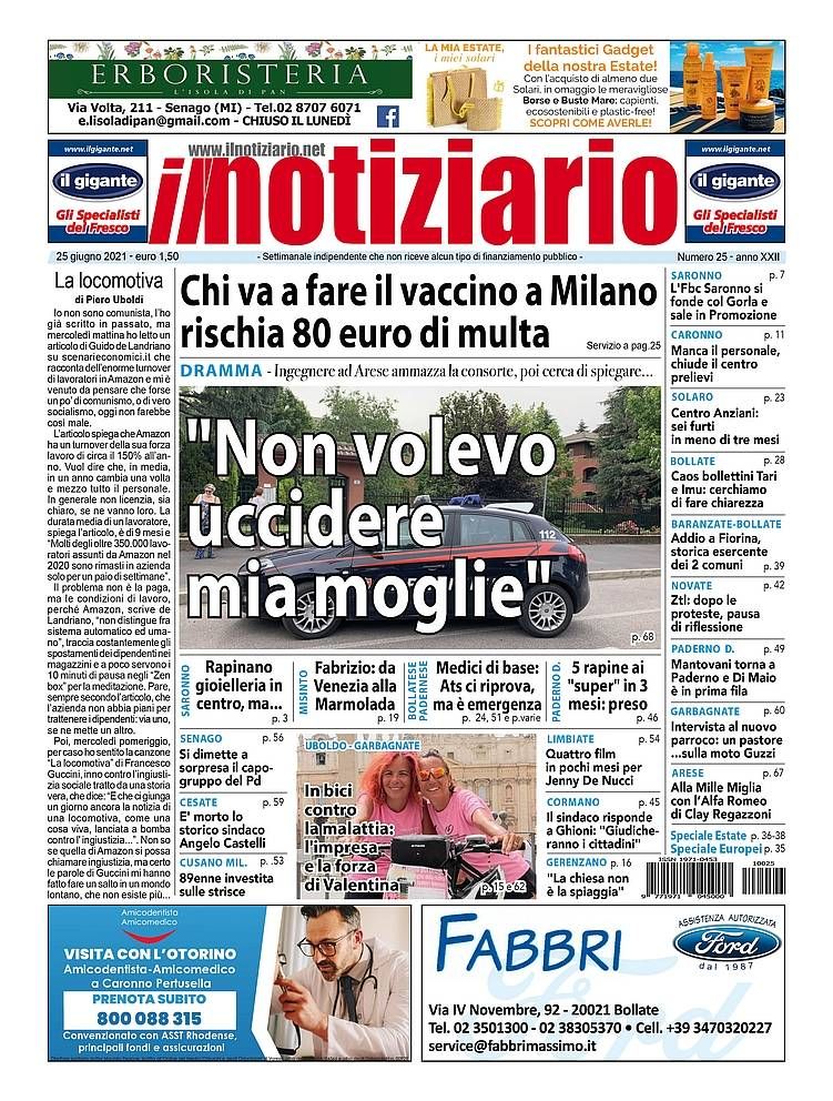 L’edizione del 25 giugno de “il notiziario” si apre con la tragedia famigliare di Arese e con il marito che dice “Non volevo uccidere mia moglie”.