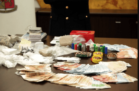 Due chili di hashish, ottocento grammi di marijuana, 25mila euro in contanti e un chilo di cocaina purissima pronta a essere ‘tagliata’.