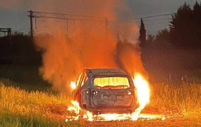Bollate: auto, forse rubata, bruciata in un campo.