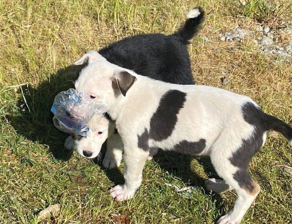 Con cautela, lo hanno aperto e con grande sorpresa hanno scoperto che all’interno si trovavano due cuccioli di cane, dell’età approssimativa di due mesi, degli incroci di cui uno bianco pezzato nero a pelo corto e l’altro nero pezzato bianco a pelo più lungo.