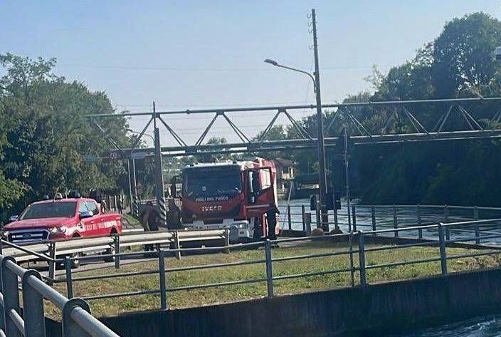 Cadavere galleggiante nel Villoresi, Vigili del fuoco in azione a Garbagnate Milanese.