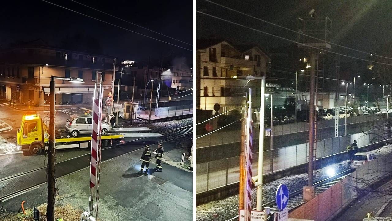Tutto ha inizio quando un’utilitaria imbocca la ferrovia. L’auto transita dal passaggio a livello di via Cialdini, ma anziché proseguire sulla carreggiata, la conducente sterza in mezzo alla massicciata. Riesce a percorrere anche un centinaio di metri verso la stazione ferroviaria. Poi le ruote si bloccano tra sassi e binari della sede ferroviaria. Così si ritrova in trappola.