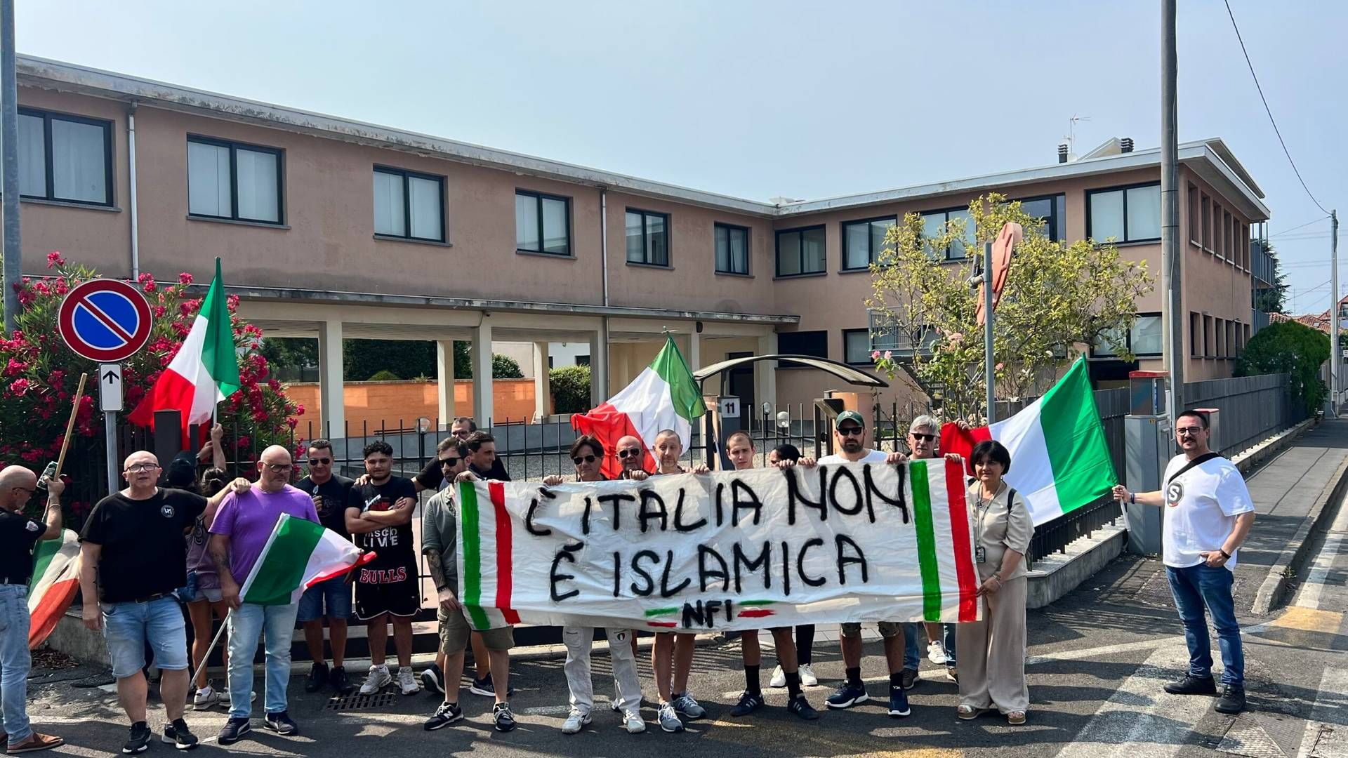 Presidio del Nuovo Fronte Italiano fuori dal centro islamico di Paderno