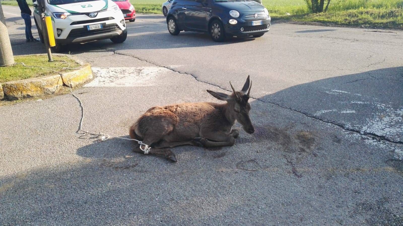 Questa mattina un cervo è stato travolto da un’auto lungo la trafficata via Per Lainate di Origgio.