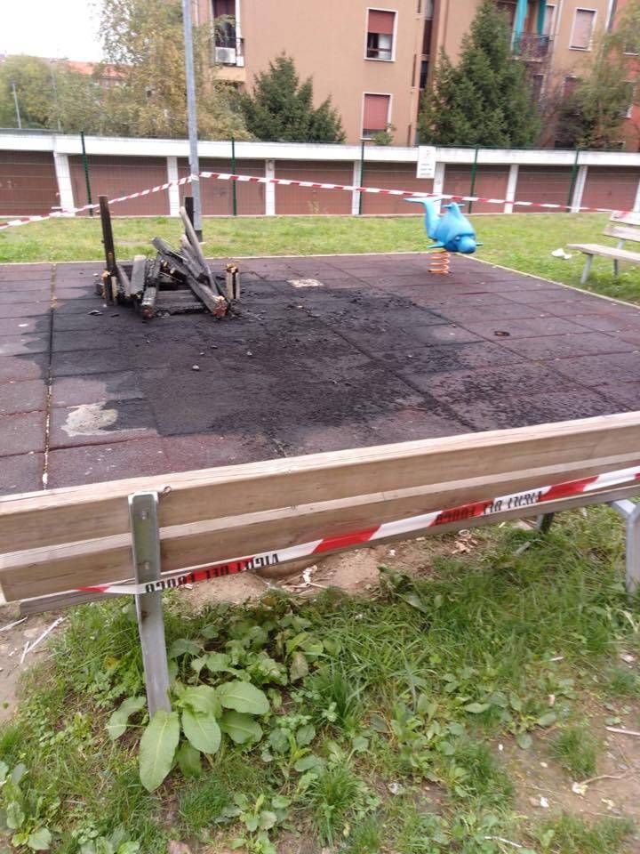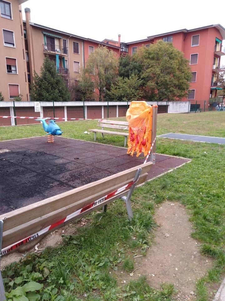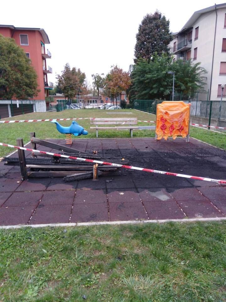 Nonostante il tempestivo intervento un gioco in legno è andato completamente distrutto mentre uno di plastica si è danneggiato fortemente. Così l’area giochi usata ogni giorno da decine di bambini è inutilizzabile. Rimangono ignoti i responsabili che hanno causato questo danno anche se il sospetto è che si sia trattata di qualche compagnia di giovani in giro per festeggiare Halloween