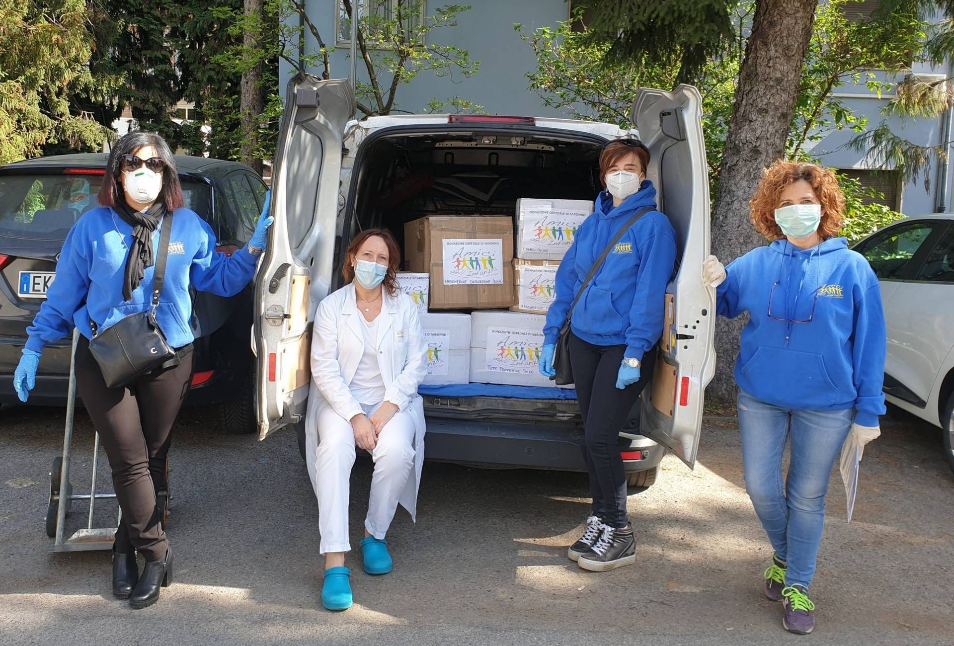 Grazie di cuore a Raffaella Banfi, che mi ha guidata pazientemente nella scelta dei dispositivi di protezione che oggi vi abbiamo consegnato. Il nostro pensiero è ogni giorno con tutti voi. Con affetto, immensa stima e gratitudine”.