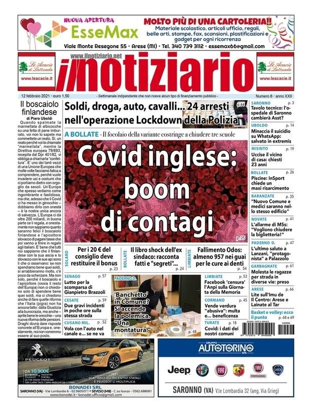 Il nuovo numero del Notiziario, in edicola da venerdì 12 febbraio, si apre con la notizia del nuovo focolaio Covid registrato a Bollate, dove si è rilevata anche la presenza della cosiddetta “Variante inglese”. Ci sono 3 scuole chiuse e si rischiano ulteriori provvedimenti di restrizione: tutti gli approfondimenti del caso.
