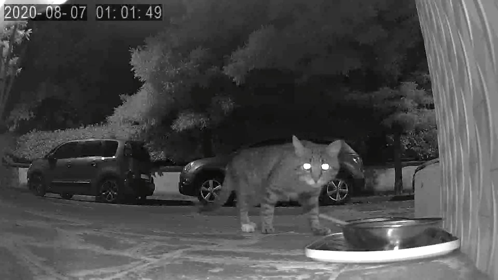Arriva di notte nelle villette di Cusano Milanino, quando tutti dormono e non ci sono movimenti. Con passo felpato supera le cancellate e svuota le ciotole. Non si tratta di un ladruncolo, ma di un gatto immortalato da alcune telecamere di videosorveglianza privata, come potete vedere nella foto qui accanto.