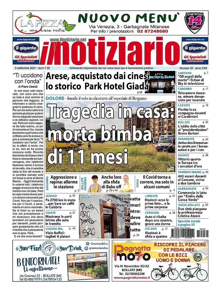 Il notiziario torna in edicola dopo la tradizionale pausa estiva: la notizia di apertura di questa edizione è la tragica morte improvvisa di una bambina di soli 11 mesi, a Cusano Milanino.