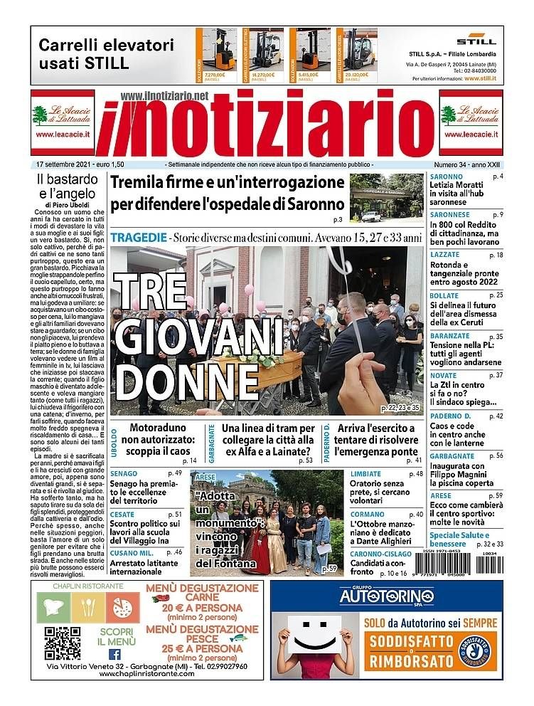Il nuovo numero del Notiziario si apre con tre storie tragiche che hanno per protagoniste tre giovani donne. Vicende molto diverse tra loro ma con un epilogo comune, la prematura scomparsa di tre donne che ha scosso le comunità di Solaro, Bollate e Baranzate.