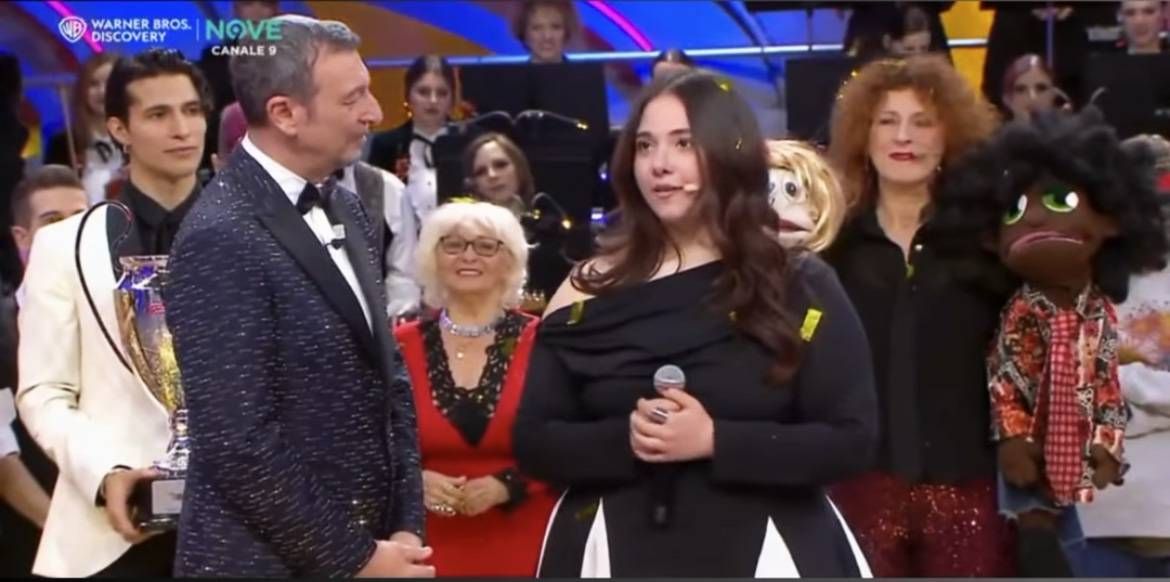 “Ho sempre pensato che la mia voce fosse un dono donatomi da lei. Anche lei aveva il sogno di cantare, ma il destino è stato crudele”, ha detto Federica, anche questa volta Amadeus non ha trattenuto le lacrime. “Mi piace pensare che un po’ di lei continui a vivere dentro di me. Realizzando questo sogno è come se lo realizzasse anche lei. In una società in cui vincono ed emergono sempre le personalità forti, una persona che si è sempre sentita ultima come me, oggi è arrivata prima”. Federica ha vinto il ‘campanaccio d’oro’, premio simbolico de La Corrida.