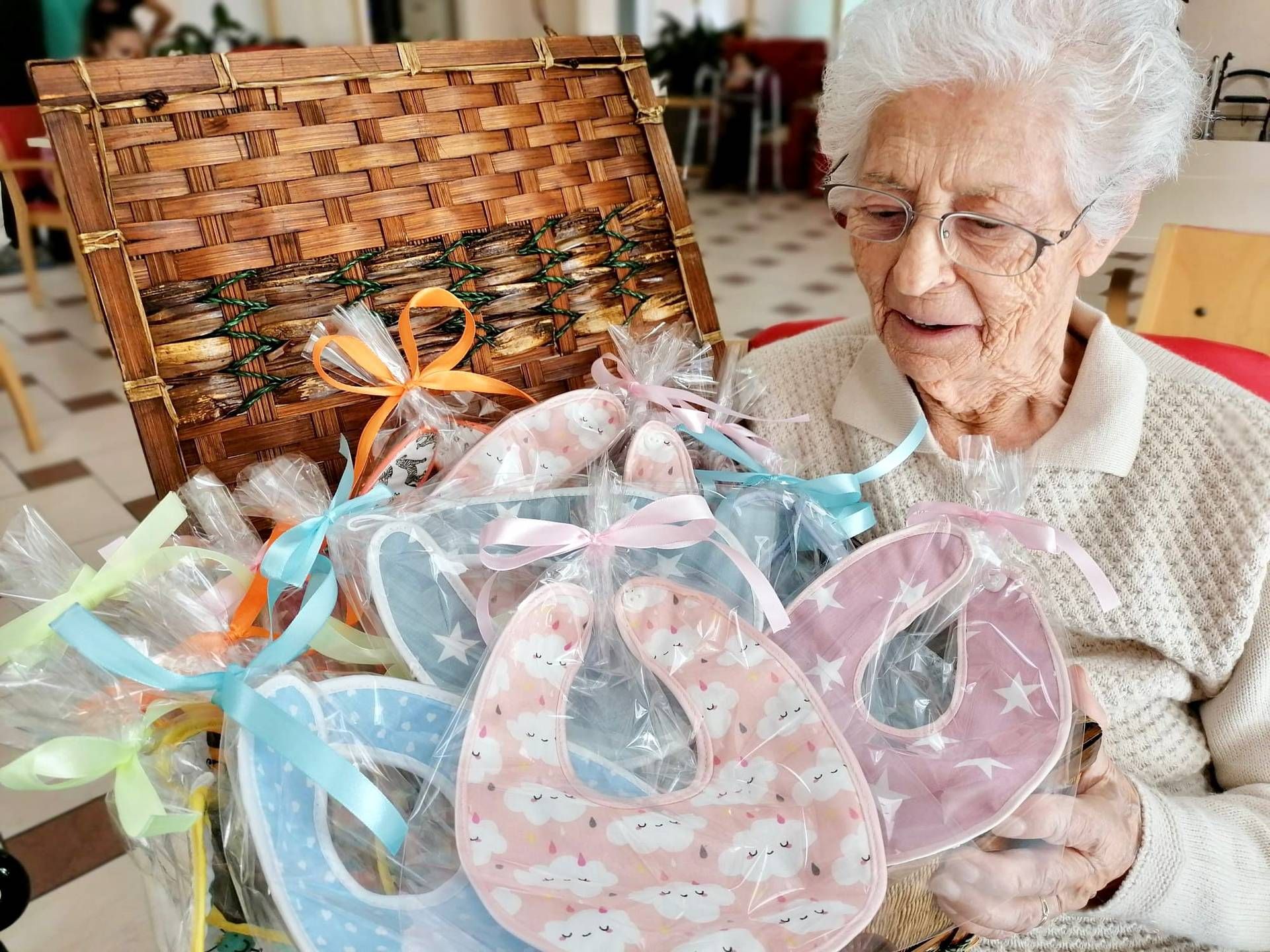 Anche quest’anno il risultato del laboratorio di cucito svolto dalle anziane della struttura è così divenuto un dono. I bavaglini sono stati realizzati sotto la supervisione dell’equipe educativa, utilizzando tessuti appositamente scelti: la consegna ha avuto alla presenza del dottor Aldo Bellini, direttore sanitario dell’Asst Rhodense, e di Marina Indino, direttore generale di Villaggio Amico.