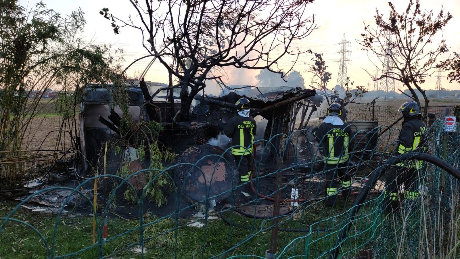 Incendio in via Goito a Cislago, dove hanno preso fuoco un vecchio capanno agricolo e un veicolo (molto vecchio, non si sa ancora se dismesso o utilizzato magari per le coltivazioni).