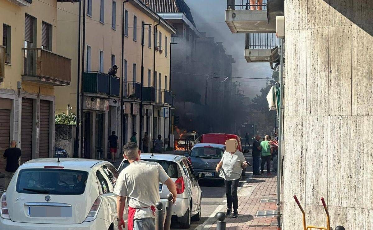 Furgone in marcia prende fuoco, incendio a Limbiate