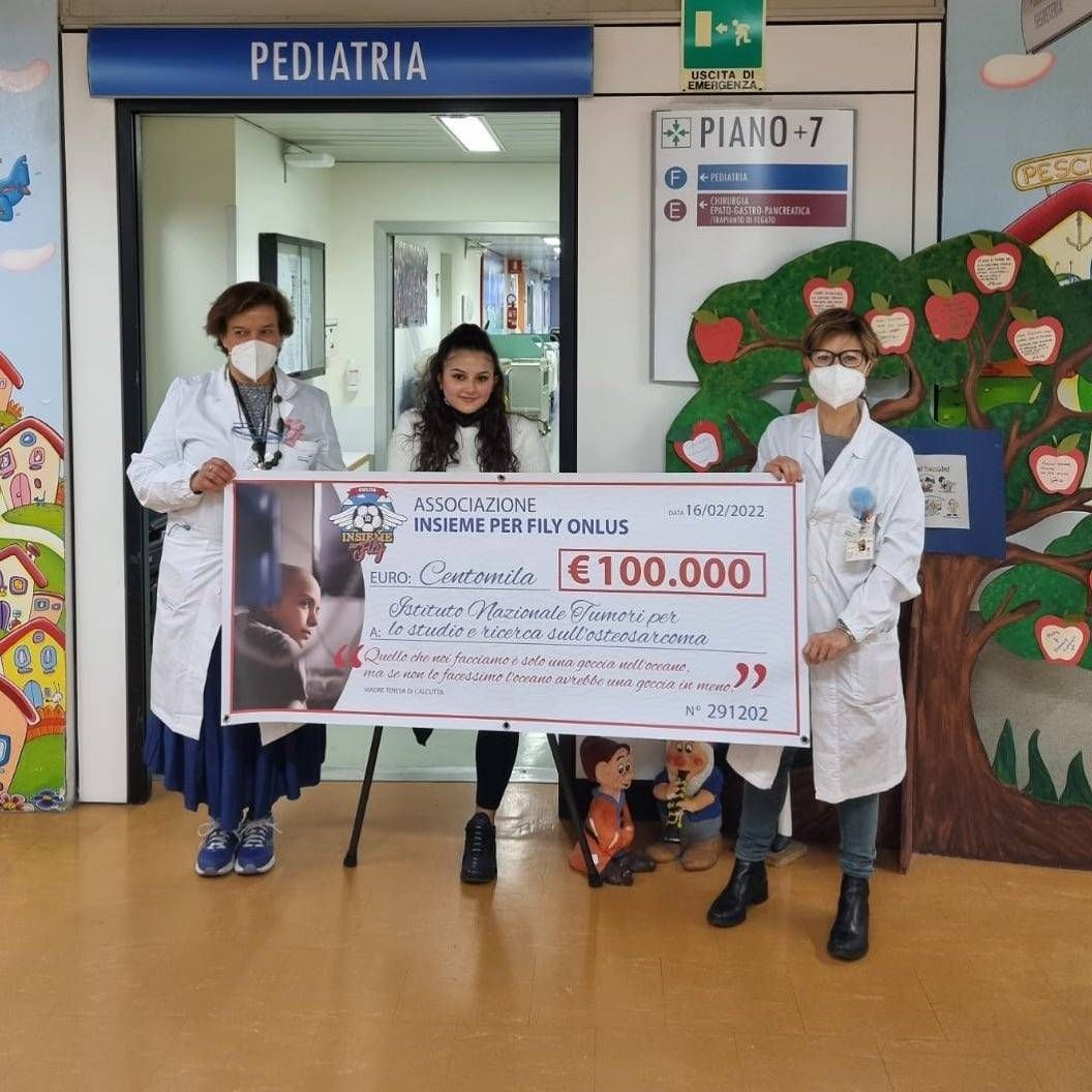 L’associazione Insieme per Fily di Misinto, che proprio l’altrra sera, nel quarto anniversario della scomparsa di Filippo ha inaugurato la sua nuova sede, ha donato 100mila euro all’Istituto Nazionale dei Tumori di Milano.
