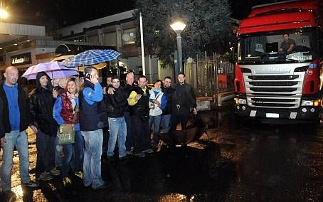 Il presidio dei lavoratori Electrolux davanti all’ingresso della fabbrica di SolaroCon uno sciopero spontaneo i lavoratori dello stabilimento Electrolux di Solaro hanno bloccato per tutto il pomeriggio di ieri l'ingresso e l'uscita degli autotreni con materie prime e prodotti finiti. I lavoratori hanno formato un picchetto davanti ai cancelli della fabbrica di lavastoviglie come protesta di fronte al piano di tagli e ristrutturazioni già ufficializzato dalla multinazionale svedese e, soprattutto, in seguito alle voci ufficiose di interventi ancora più drastici sugli stabilimenti italiani. I Comitati di base hanno diffuso notizie ufficiose raccolte tra rappresentanti degli stabilimenti italiani del Gruppo, che hanno partecipato al confronto sindacale europeo svoltosi martedì a Berlino. Secondo queste indiscrezioni, che non hanno al momento riscontro documentale, Electrolux avrebbe già deciso di sacrificare le aziende italiane che ad oggi sono ufficialmente "sotto osservazione". Di qui la reazione dei comitati di base che hanno deciso di uscire dalla fabbrica e attivare un blocco del movimento merci in entrata e in uscita. Dalle 13,30 circa, i lavoratori hanno impedito l'ingresso in azienda degli autotreni per le forniture e di quelli che dovevano caricare i prodotti finiti. Sul posto anche i carabinieri dopo un primo momento di tensione tra gli operai ed uno degli autotrasportatori. La manifestazione è proseguita fino alle 18 senza ulteriori problemi. Oggi, venerdì 15, i lavoratori Electrolux partecipano allo sciopero generale con manifestazione a Milano dove è previsto anche un intervento specifico sulla situazione della fabbrica solarese. Ulteriori forme di protesta sono annunciate per la prossima settimana.