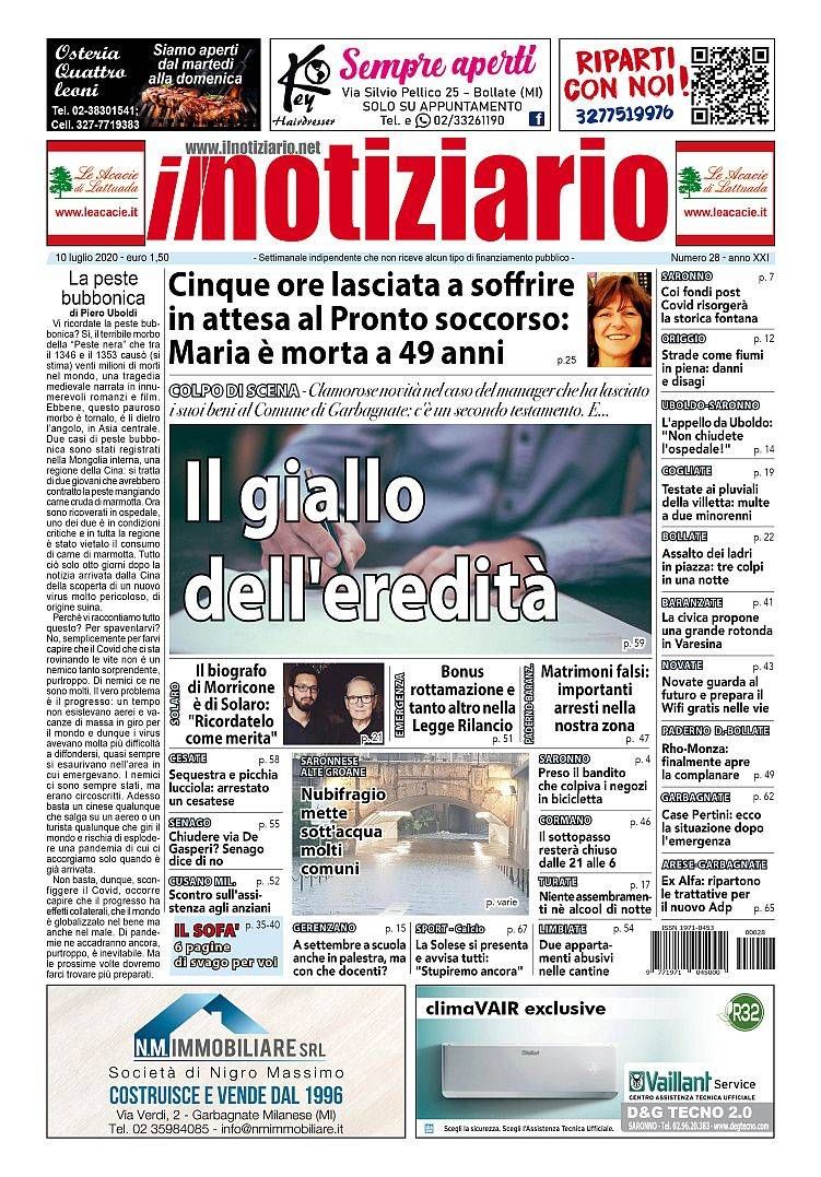 Il titolo di apertura è dedicato al caso dell’eredità contesa di Garbagnate: un manager vicino alla famiglia Berlusconi aveva depositato un testamento col quale lasciava molti dei suoi sostanziosi averi al Comune di Garbagnate, ma ora spunta un secondo testamento.