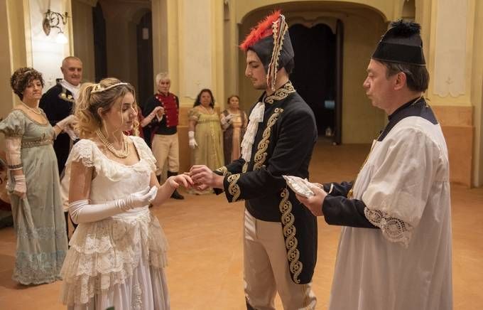 Visto che non era possibile la presenza del pubblico, gli organizzatori hanno ricalcato la storia, organizzando una rievocazione in notturna, ricordando che il 14 giugno del 1797 le sorelle del generale francese, Paolina ed Elisa convolarono in nozze alle tre di notte nell’ antico oratorio San Francesco, che si trova accanto alla villa Crivelli Pusterla a Mombello di Limbiate.