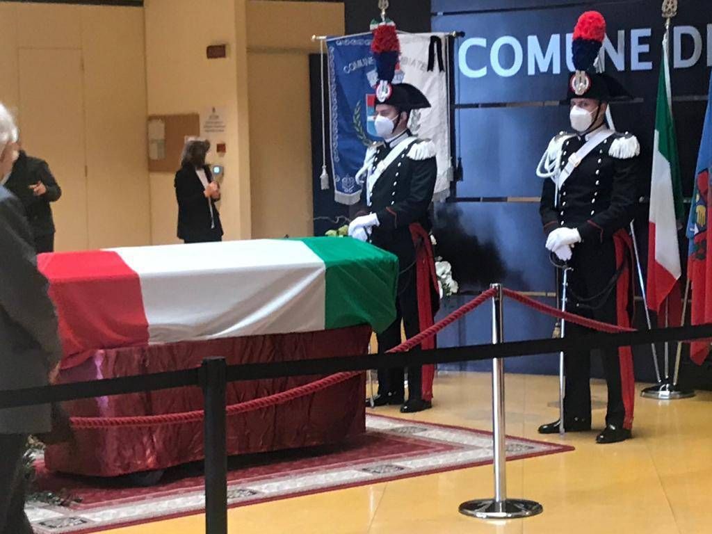Il feretro, posizionato nell’atrio del Municipio, è presidiato da due carabinieri in alta uniforme e tra i primi a rendere omaggio, questa mattina anche il generale di corpo d’armata Claudio Vincelli, Comandante Interregionale Carabinieri “Pastrengo” e il generale Andrea Taurelli Salimbeni, Comandante della Legione Carabinieri Lombardia, portando la vicinanza dell’Arma alla famiglia del diplomatico italiano.