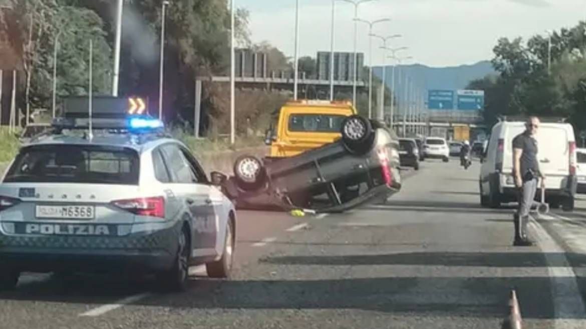 Auto ribaltata in Milano-Meda a Paderno Dugnano