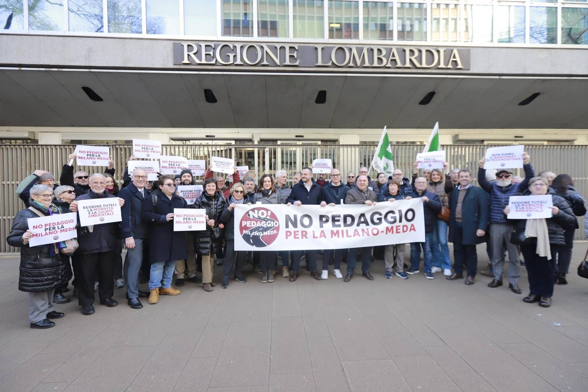 Le sezioni del Pd dei territori attraversati dalla Milano-Meda in Brianza, insieme a rappresentanti di comitati e cittadini hanno manifestato questa mattina davanti alla sede di Regione Lombardia per protestare contro l’introduzione del pedaggio sulla Milano-Meda dopo che sarà trasformata in Pedemontana.