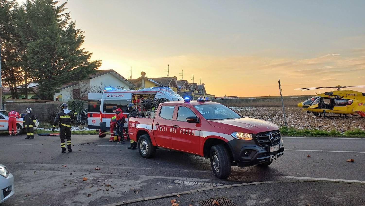 Sul posto è atterrato l’elicottero del 118 partito da Milano mentre era già presente l’auto infermieristica partita da Misinto con l’ambulanza della Croce Rossa di Misinto. Sono intervenuti anche alcuni mezzi dei Vigili del fuoco di Saronno.