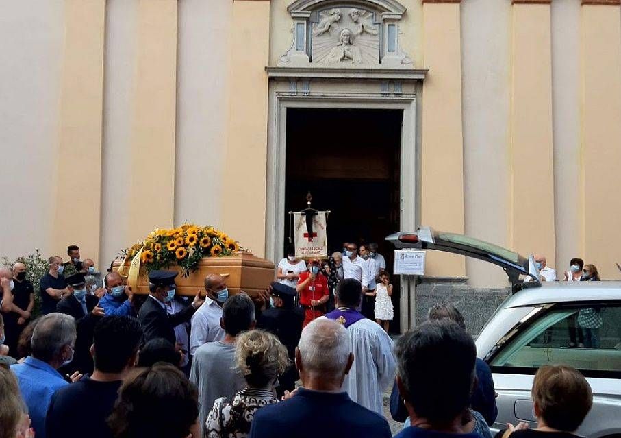 Due ali di folla, radunata lungo le strade del centro hanno accolto l’arrivo del feretro di Piuri prima dell’ingresso nella chiesa parrocchiale di San Siro, dove per le misure anti-Covid, sono stati ammessi solo famigliari e parenti stretti.
