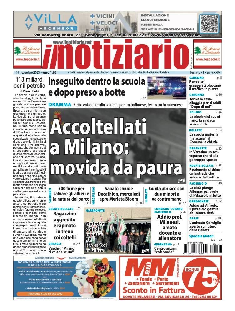 Sulla prima pagina del Notiziario di oggi, la prima notizia riguarda un uomo di Bollate e uno di Baranzate accoltellati e feriti gravemente a Milano sulle strade della movida.