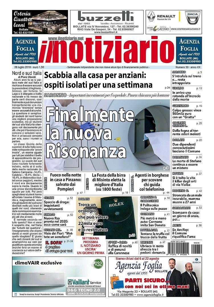 L’edizione di oggi de “Il notiziario” si apre con una buona notizia per l’ospedale di Saronno e per i molti che vi fanno riferimento: finalmente sarà installata una nuova macchina per la risonanza magnetica e ci saranno investimenti importanti in strumenti per la diagnostica, segnali che potrebbero allontanare le paure per la chiusura del nosocomio.