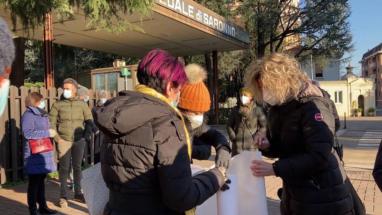 Medici anestesisti, infermieri, operatori sanitari del reparto rianimazione e di altri reparti dell’Ospedale di Saronno hanno dato vita questa mattina ad un flash mob, davanti all’ingresso per manifestare la loro preoccupazione.