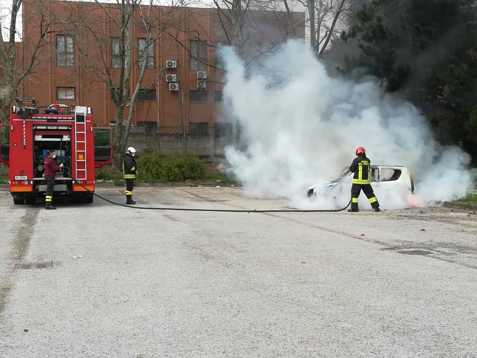 L’auto era l’unica parcheggiata davanti al cimitero, di questi tempi chiuso per evitare contagi. A un certo punto la lunga colonna di fumo che si è sviluppata ha allarmato alcuni residenti che hanno allertato i pompieri. In pochi minuti Vigili del Fuoco e polizia locale sono arrivati a sirene spiegate.