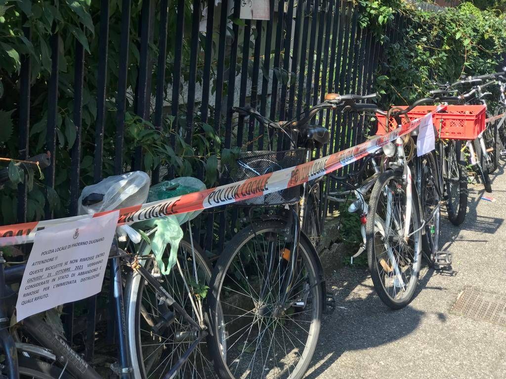 Quelle che resteranno legate alle cancellate verranno rimosse venerdì mattina e distrutte come rifiuti. Già in passato il Comune ha proceduto alla rimozione di scheletri di biciclette abbandonate sul territorio padernese.