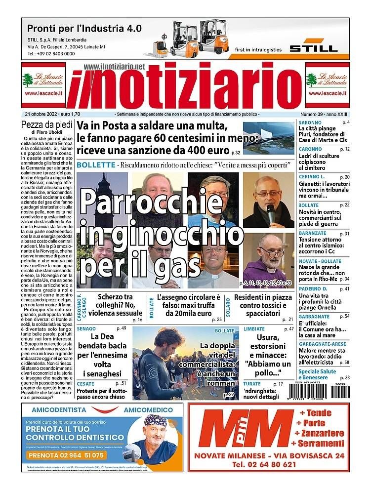 Questa settimana il titolo di apertura della nuova edizione del Notiziario è dedicato alle difficoltà delle parrocchie di fronte al caro bollette. Alcuni parroci meditano il “taglio” delle messe, la riduzione della temperatura nelle chiese. Ma a preoccupare sono anche i consumi di oratori, palestre e scuole d’infanzia parrocchiali. Articoli da Saronno, Paderno Dugnano, Bollate, Lazzate, Misinto, Caronno Pertusella, Origgio.