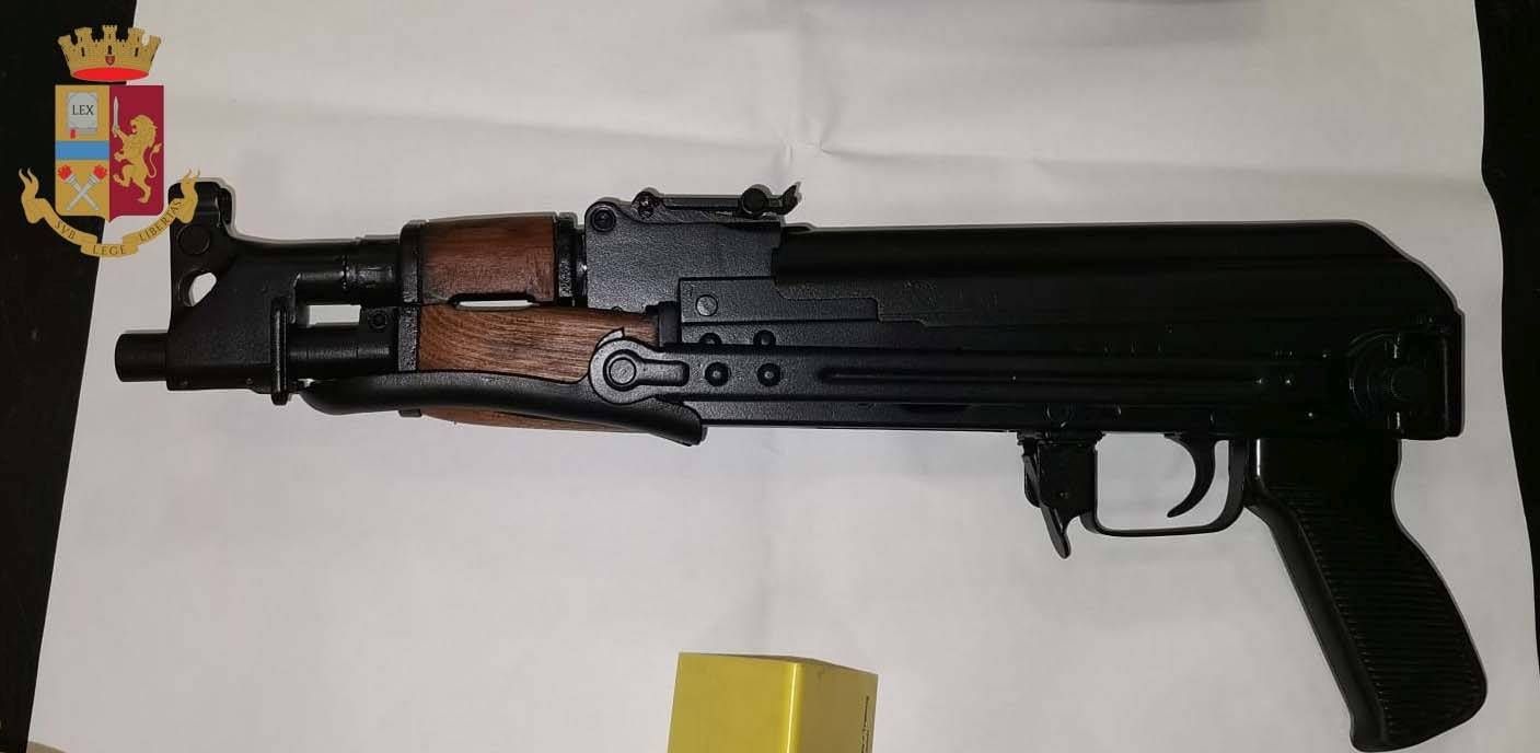 A seguito di perquisizione dell’auto sono intervenuti gli agenti della Squadra Mobile che, all’interno del portabagagli, hanno rinvenuto un arsenale di armi e munizioni: 5 Kalashnikov AK 47, un fucile d’assalto, 3 pistole, 6 granate, 800 munizioni di diverso tipo e calibro e un manganello telescopico.