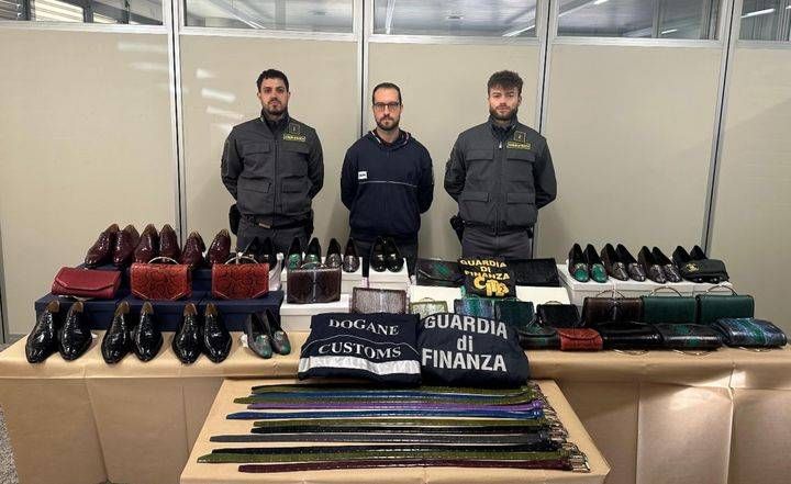 Sequestro alla dogana, scarpe, borse e cinture di pitone e coccodrillo