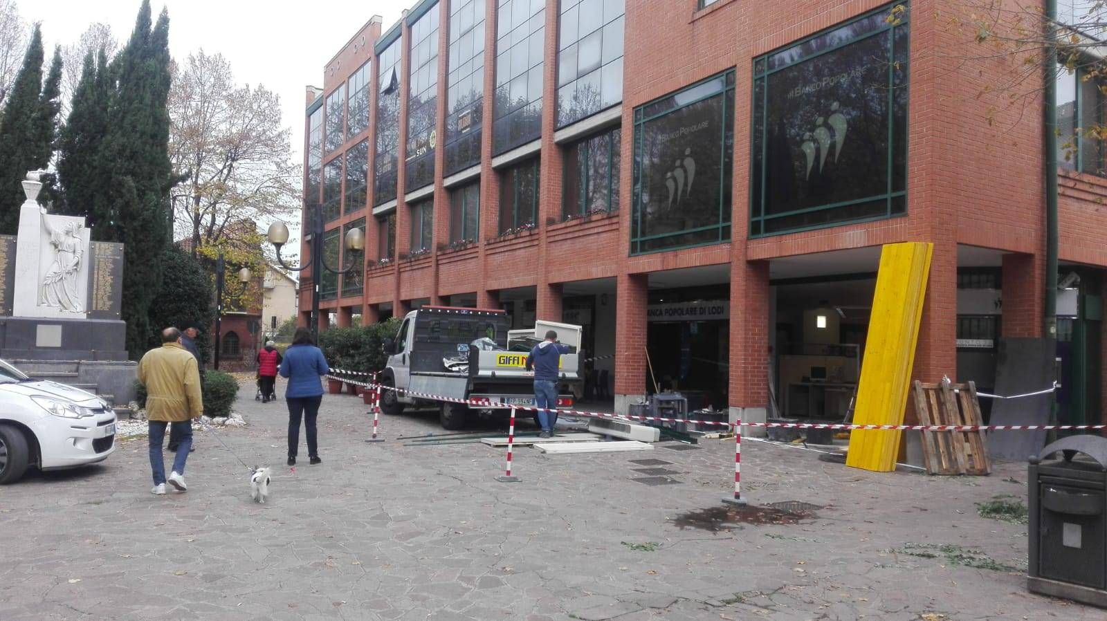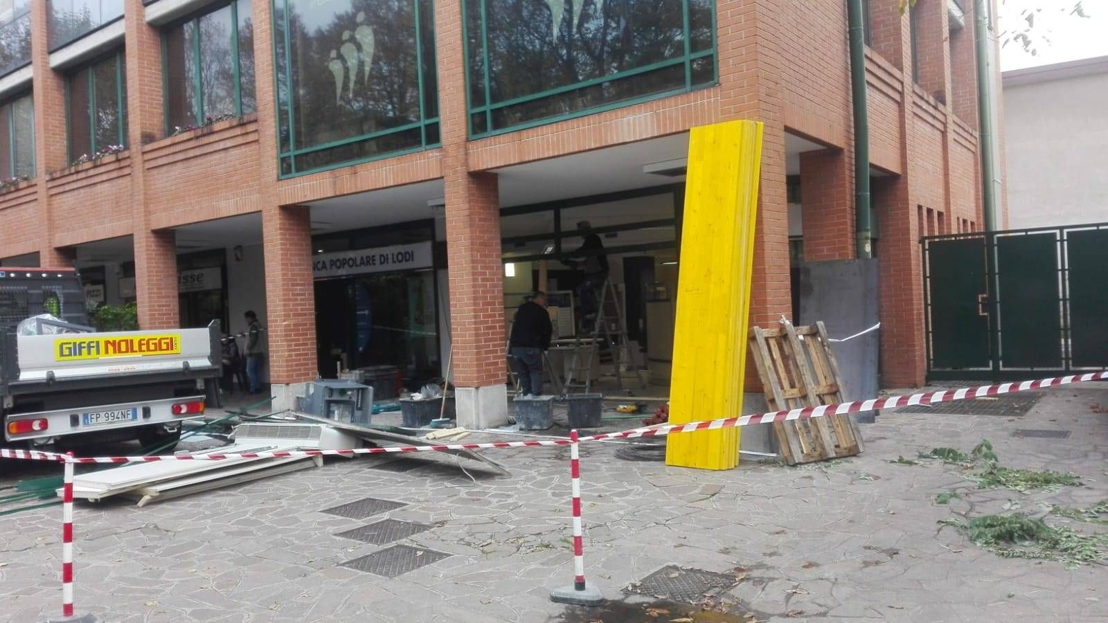 Assalto nella notte di Halloween alla banca di Lodi in piazza Generale Dalla Chiesa a Senago di fronte a Villa Borromeo, come potete vedere nelle foto qui sopra. Gli anonimi ladri hanno sventrato la filiale a bordo di un’auto lanciata a tutta birra contro la vetrata che hanno mandato in frantumi.
