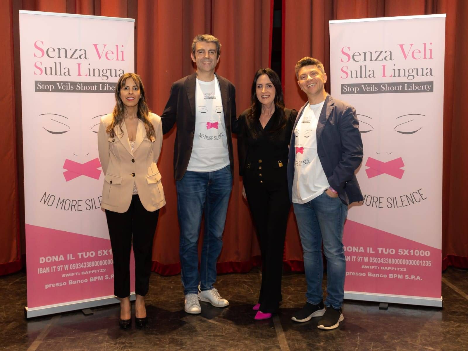 Durante la serata sono stati consegnati due importanti riconoscimenti. La presidente dell’associazione, Ebla Ahmed, e la consigliera nazionale Elisa Buonanno hanno conferito la targa “Senza Veli sulla Lingua” all’On. Stefania Ascari (Commissione Giustizia) per il suo costante impegno nella tutela dei diritti delle donne e nella promozione della parità di genere. Un secondo riconoscimento è stato assegnato a Don Bruno Maggioni, da dodici anni vicino all’associazione, che ha chiuso la serata coinvolgendo il pubblico in un momento di festa collettiva sulle note di Mamma Maria dei Ricchi e Poveri. Un finale travolgente per un evento che ha saputo unire profondità e leggerezza.