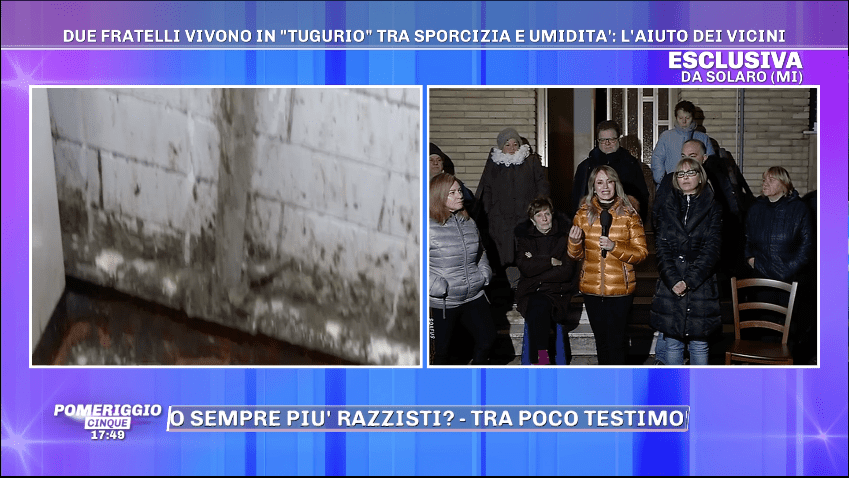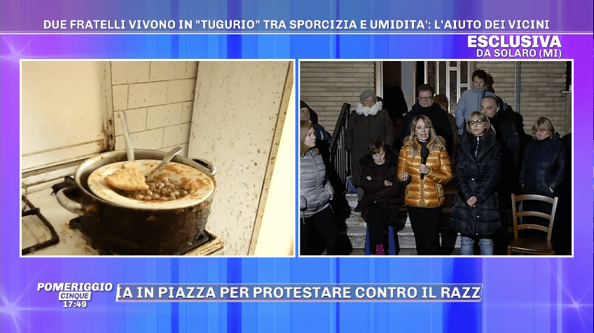 “Sono due fratelli che vivono con un solo pasto al giorno (per una persona non per due) offerto dal comune, senza riscaldamento e senza acqua calda in un ambiente molto sporco”, hanno scritto alcuni vicini di casa al programma di Mediaset. “Appena si apre la porta o la finestra non si respira”.