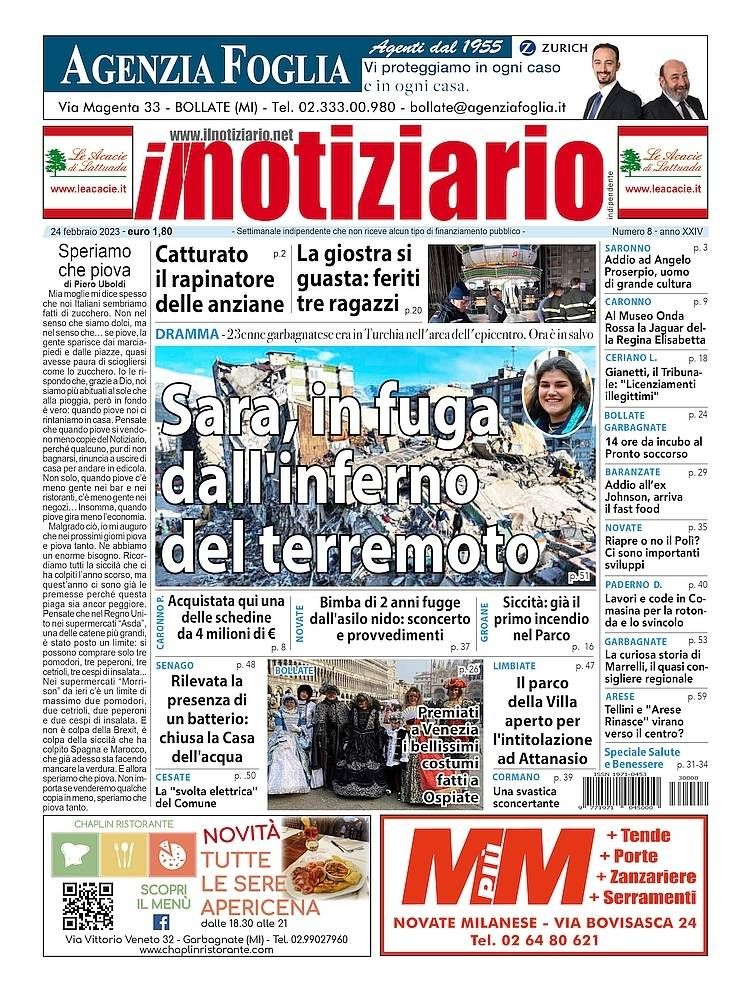 La nuova edizione del Notiziario si apre con la storia di Sara, di Garbagnate, in fuga dal devastante terremoto in Turchia, il racconto dell’inferno visto dall’epicentro.