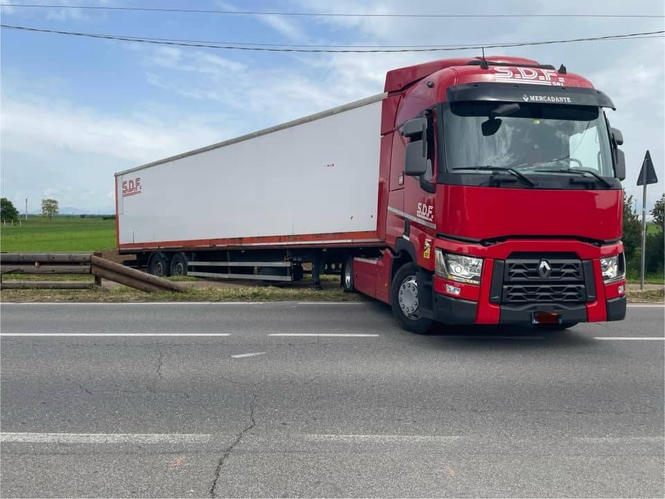A quel punto ha pensato di cavarsela tentando l’inversione a “U” all’altezza del civico 120. Dopo avere accostato sulla destra, ha iniziato la retomarcia per infilare il rimorchio nello spazio esistente del guard rail a protezione della pista ciclabile e poi spingerlo fino nel campo agricolo al fianco. Quando è stato il momento di “raddrizzare”, le ruote della motrice appoggiate sull’erba, con il peso del carico tutto sbilanciato sul rimorchio, hanno reso impossibile l’impresa. Sul posto è intervenuta la Polizia locale, in seguito alla segnalazione di residenti e passanti.