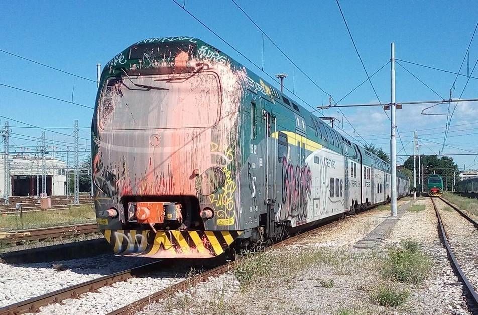 Un treno reso irriconoscibile. Preso letteralmente a secchiate di vernice. Così è stato ritrovato questa mattina uno degli ultimi treni consegnati di Trenord. E il vandalismo compiuto nella notte nello scalo di Bovisa ha costretto ad inviare il treno in sede di deposito per il lavaggio a Milano Fiorenza.