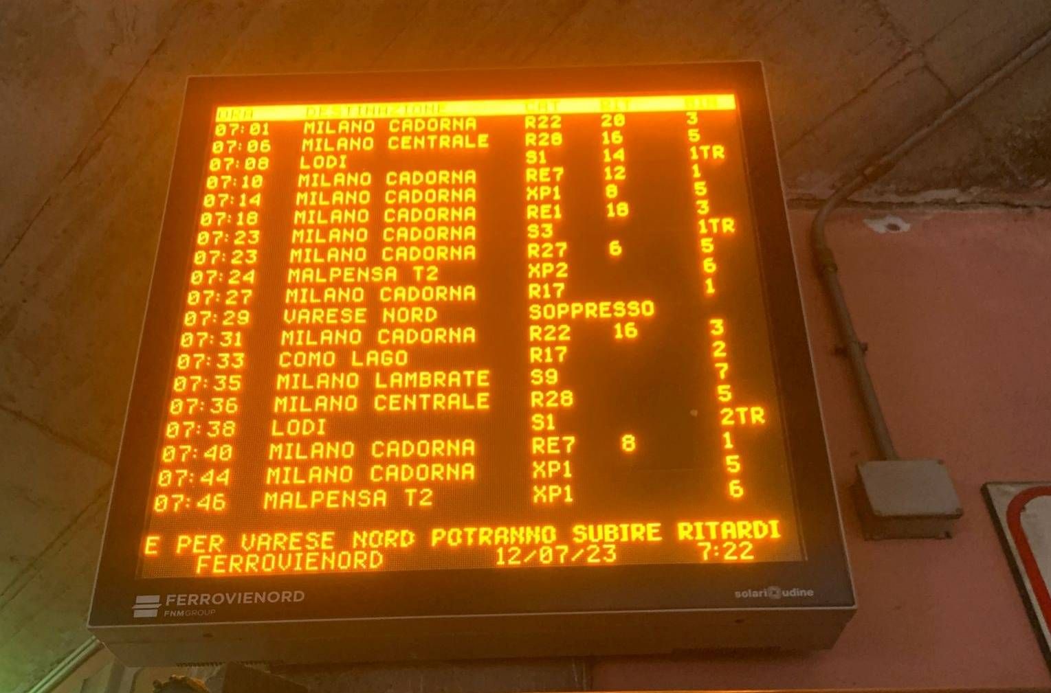 Treni bloccati a Saronno e lungo le linee da Varese, Como e Malpensa questa mattina, 12 luglio per un altro problema tecnico dovuto al maltempo.