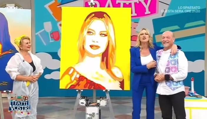 E’ stata una vera sorpresa, per la conduttrice Anna Falchi, scoprire – una volta conclusa l’opera e girata la tela – che era il suo volto quello tratteggiato da Vendramin: “Le assomiglio? – ha scherzato mettendosi in posa accanto al suo ritratto, per poi chiedere: “Posso portarmelo a casa?”. “Certo”, ha risposto lui fra gli applausi.