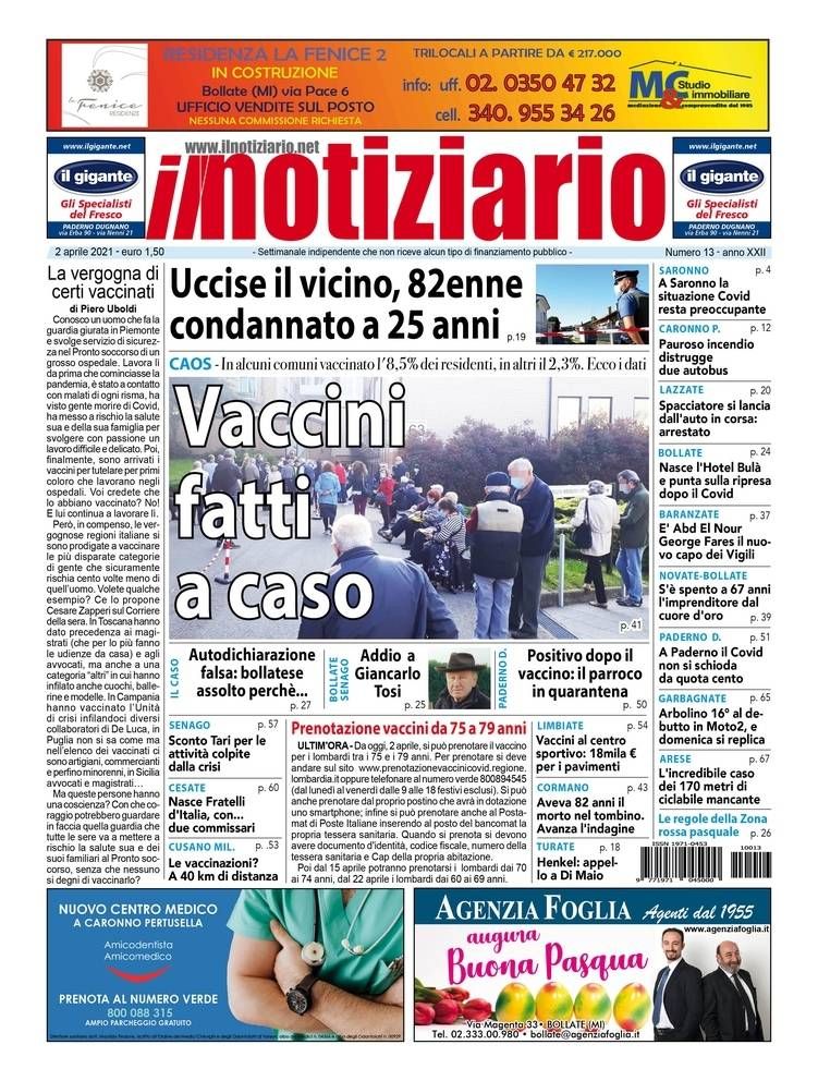 L’apertura della nuova edizione del Notiziario è dedicata alla gestione dei vaccini anti Covid nella nostra zona, con anziani che vengono inviati per le somministrazioni anche a 50 km di distanza dai luoghi di residenza, da una provincia all’altra, senza rispettare ordine di età o di prenotazione o di disponibilità di centri vaccinali nelle vicinanze: vaccini fatti a caso, le situazioni a Saronno, Bollate, Paderno Dugnano, a Misinto e Limbiate.
