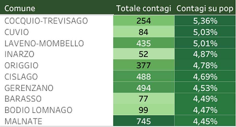 Da Origgio a Cislago, passando per Gerenzano, i tre comuni confinanti del basso varesotto occupano le posizioni centrali nella classifica dei 10 comuni con maggiore diffusione del Covid in provincia di Varese.